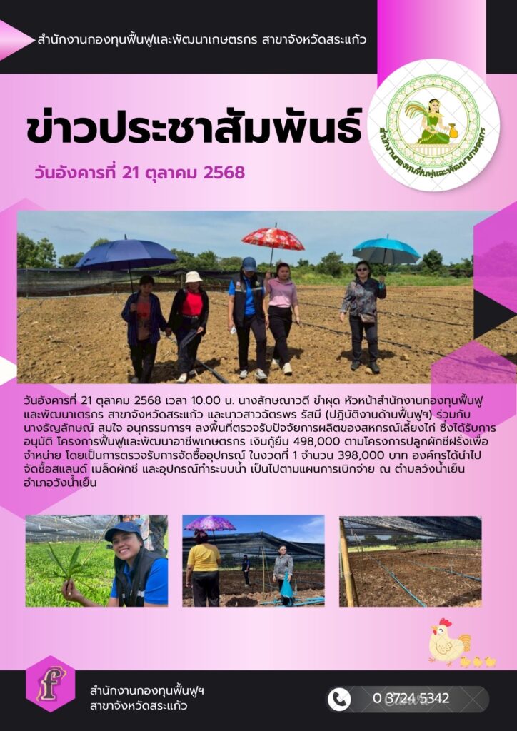วันอังคารที่ 21 ตุลาคม 2568 เวลา 13.30 น. นางลักษณาวดี ขำผุด หัวหน้าสำนักงานกองทุนฟื้นฟู